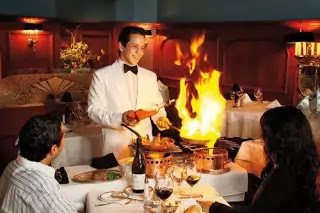 Menu items are cooked or flambeed or carved in front of the guest by specially trained staff . This is requires professionally trained service staff who understand and can follow all of the procedures required for effective table side food preparation .